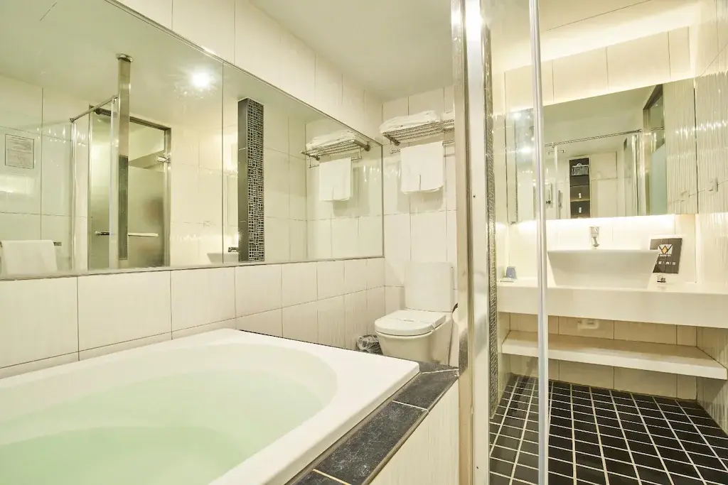 房內泡湯: 配有溫泉浴缸,提供礁溪著名的碳酸氫鈉泉,旅客可以隨時在房內泡湯放鬆
